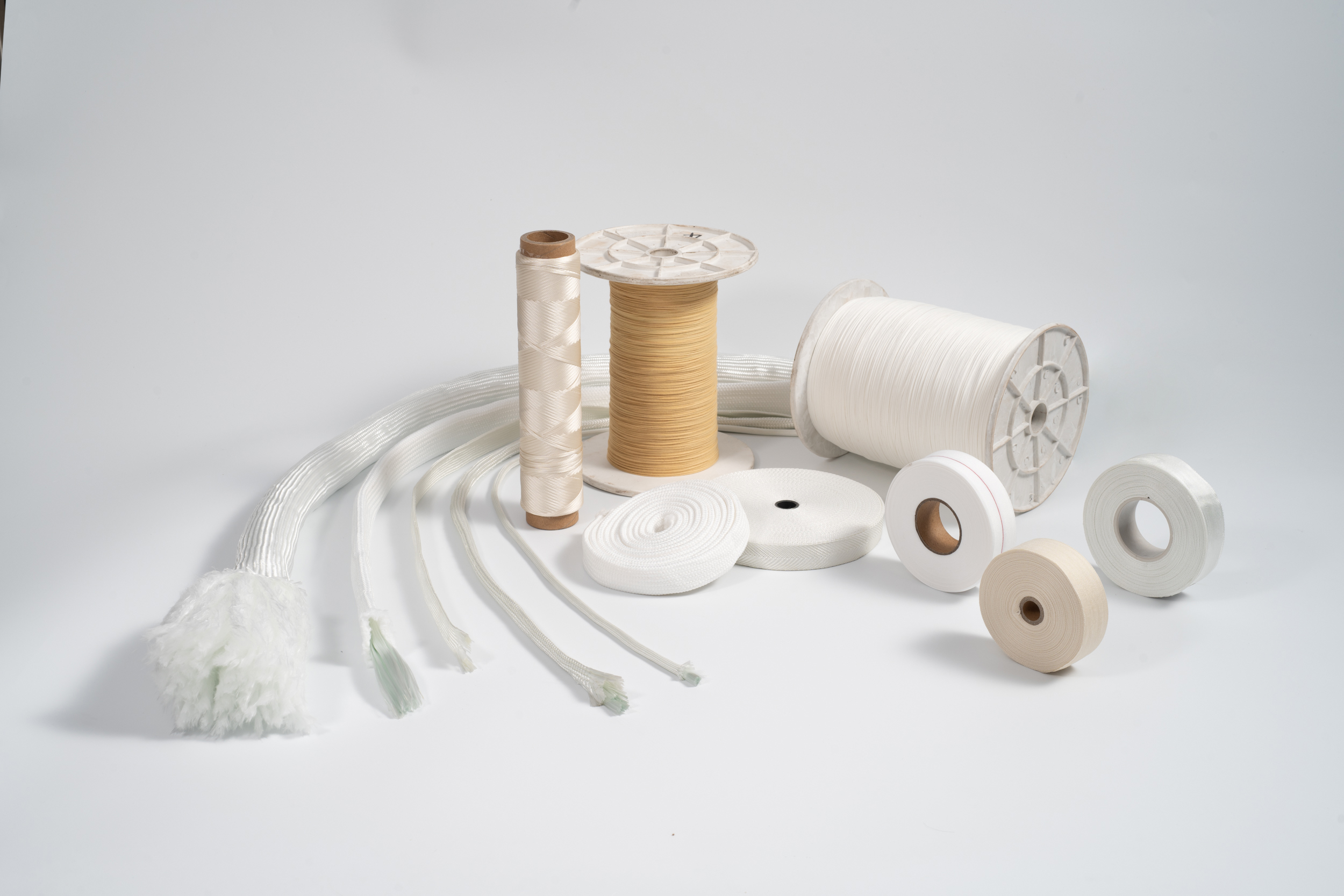 以聚酯长纤维、玻璃纤维、棉纤维、聚芳纤维等编织的带子或管子,用于电气线圈绝缘外貌包扎、导线绑扎牢靠。